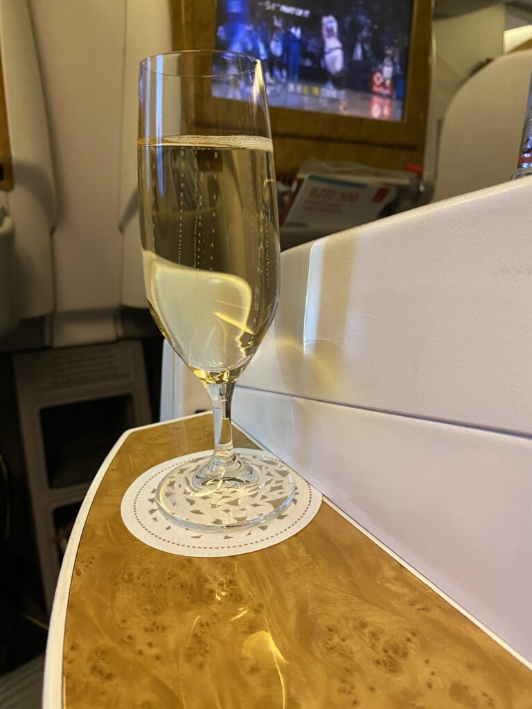 Etanan lailla vaeltelevien tuntien jälkeen pääsimme siirtymään koneeseen. Silmät ymmyrkäisinä ihastelin business luokan puitteita, ja kulautin tarjotun samppanjan hermojen lievennykseksi kitaani.