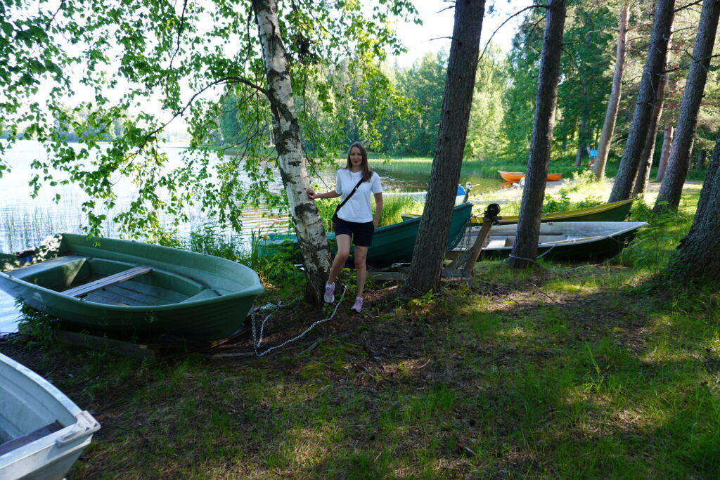 Joen rannalta jatkoimme maisemakävelyä järven rantaan. Lukuisat soutuveneet makoilivat rannalla sulassa sovussa. Paikalla olisi ollut myös pieni uimaranta, mutta meillä ei ollut tällä kulttuurikierroksella uima-asuja mukana.