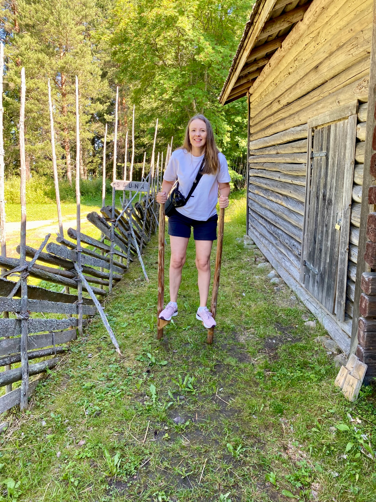Rakennusten pikkuruiset ovet ja hämärät huoneet saivat minut tuntemaan itseni lievästi klaustrofobiseksi jättiläiseksi. Aamulla pihapiirissä oli vielä hiljaista. Museon puisilla rappusilla paikkaa vartio nuori kesäopas. Voisin kuvitella, että museo-oppaana toimiminen olisi varsin jännittävä (kesä)työ. Saisi kertoilla tarinoita kiinnostuneille päivät pääksytysten. Jätimme maksullisen museovierailun tällä kertaa väliin, ja kävimme kiertelemässä vain ilmaisissa rakennuksissa.