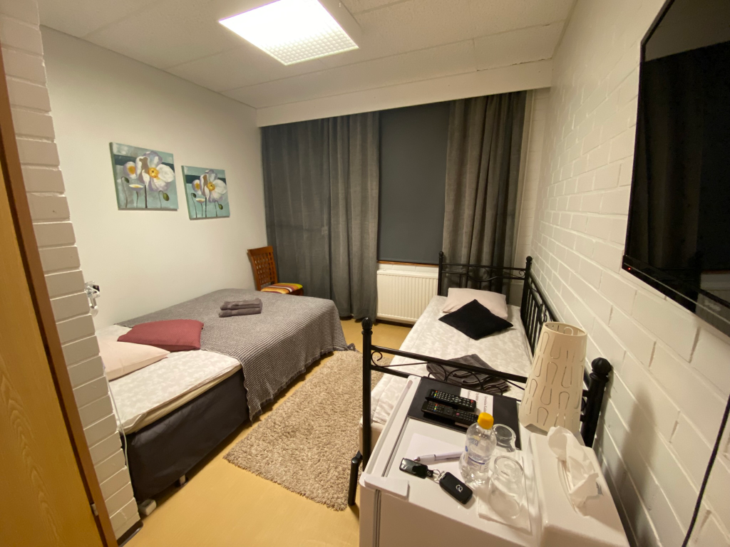 Jokaisen huoneen ovessa oli koodilukko, joka alkoi myös piippaamaan, mikäli koodittomana seisoi oven takana turhaan patsastelemassa. Paikalla oli varmasti myös kameravalontaa turvallisuutta takaamaan. Mukana olleet vanhempani majoittuivat toiseen kerrokseen, josta olisi löytynyt myös käsittääkseni varaussauna. Itse saimme huoneen ensimmäisestä kerroksesta.