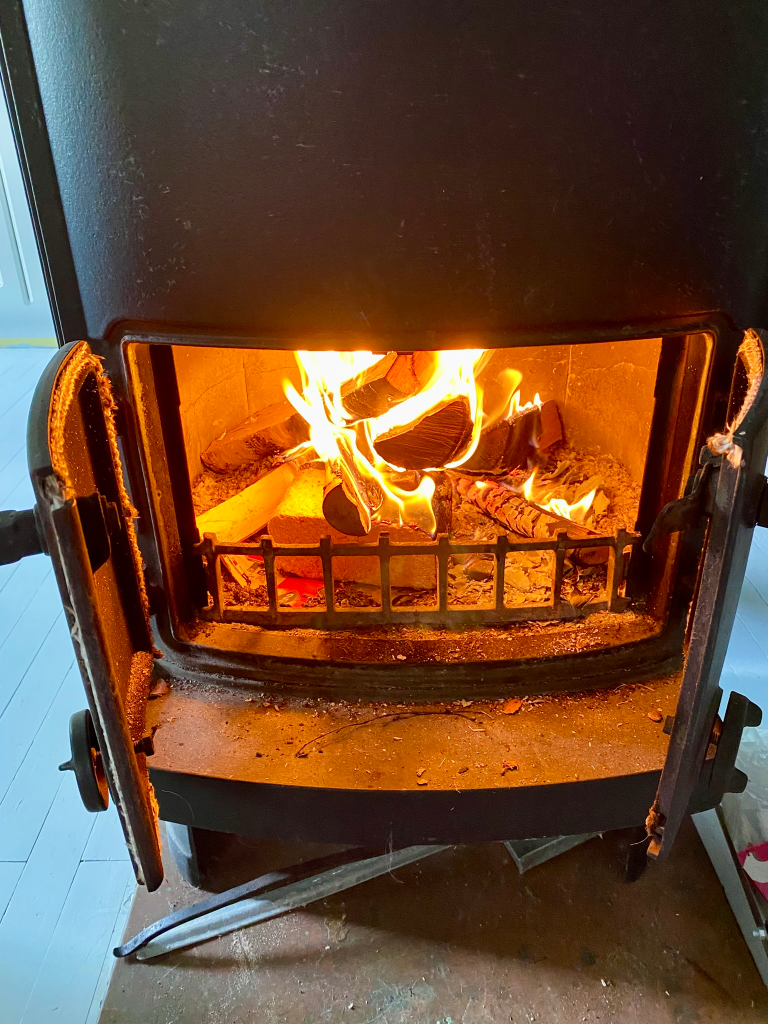 - Kamiinan lämmöstä kesämökillä koleana päivänä