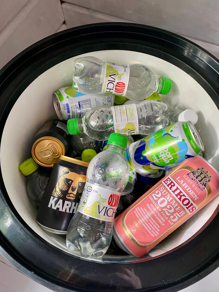 - Mökin juomatynnyristä, jonka pyrin pitämään aina täynnä mitä erilaisempia virkistysjuomia. Juomatynnyri on osoittautunut ehkä yhdeksi parhaimmista investoinneista mökille. Olen kova juomaan vettä, joten mökillä vaihdan ns. luksusvaihteen päälle. Hanaveden sijaan siemailen maustettua vichyä tai erilasia limsoja ja oluita.