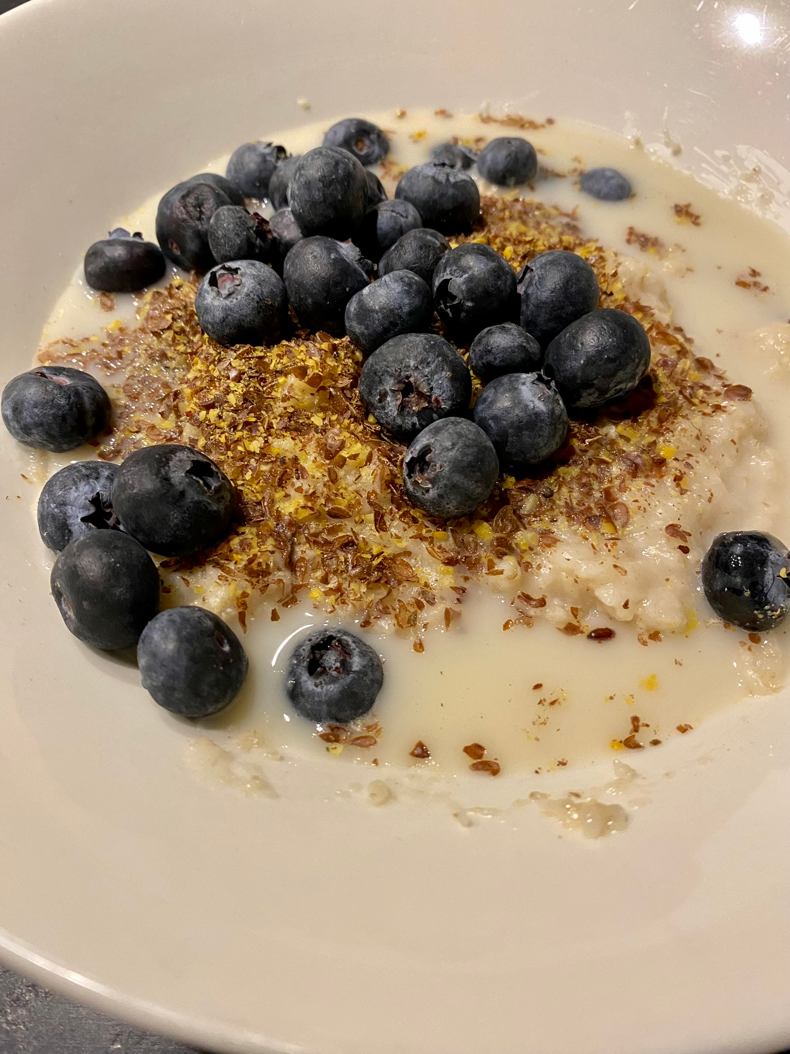 Suurimmat muutokset tein aamupalassa ja lounaassa. Olen syönyt vuosia aamiaiseksi täsmälleen samaa: ultraprosessoitua soijajogurttia, olkoonkin ollut maustamatonta ja sokeritonta. Nyt vaihdoin aamupalaksi kaurapuuron mustikoilla.