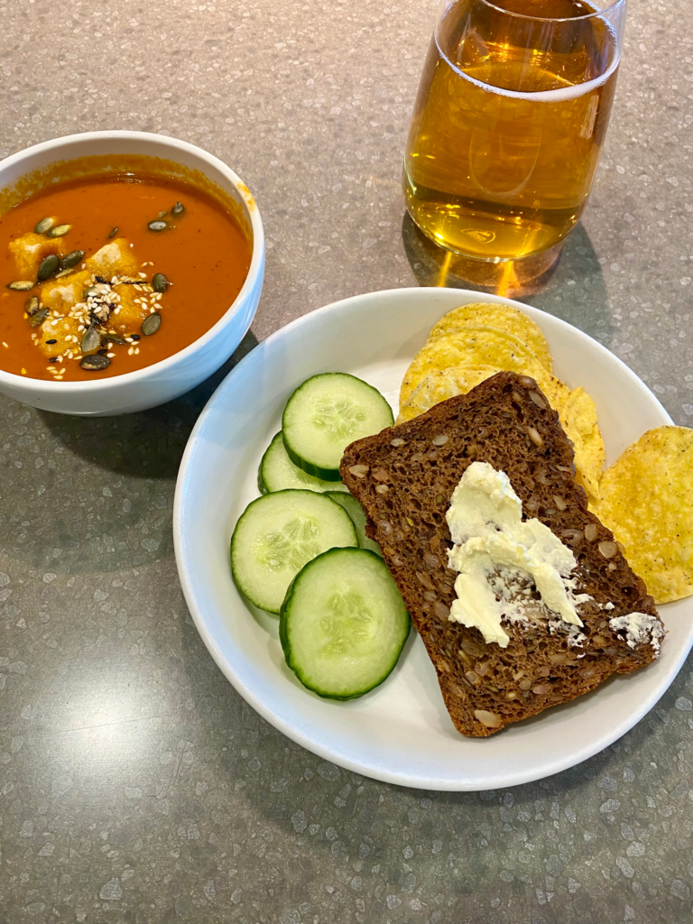 Vierailumme aikana kaikkialla oli siistiä, eikä ruokia oltu sotkettu ympäri tarjoilupöytiä. Löysimme helposti istumapaikat. Tosin en tiedä olisiko sunnuntailla ollut osaa tähän? Rauhallisessa ympäristössä maistuivat mm. tomaattikeitto, leipä, sipsit ja olut.