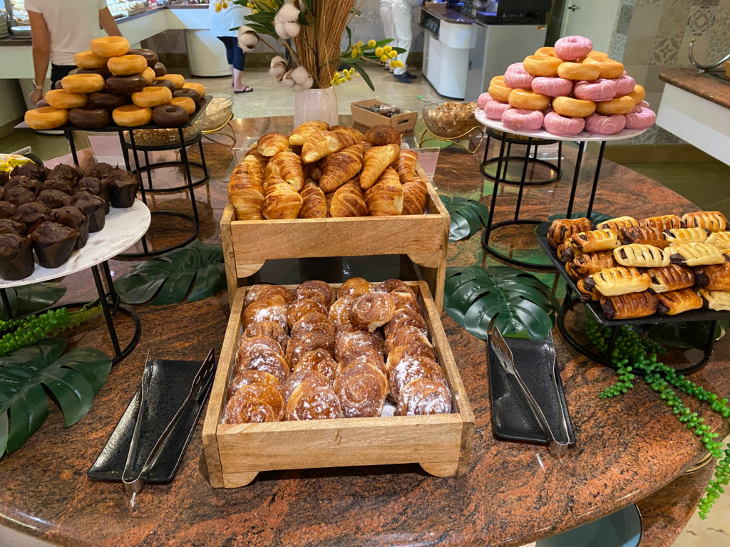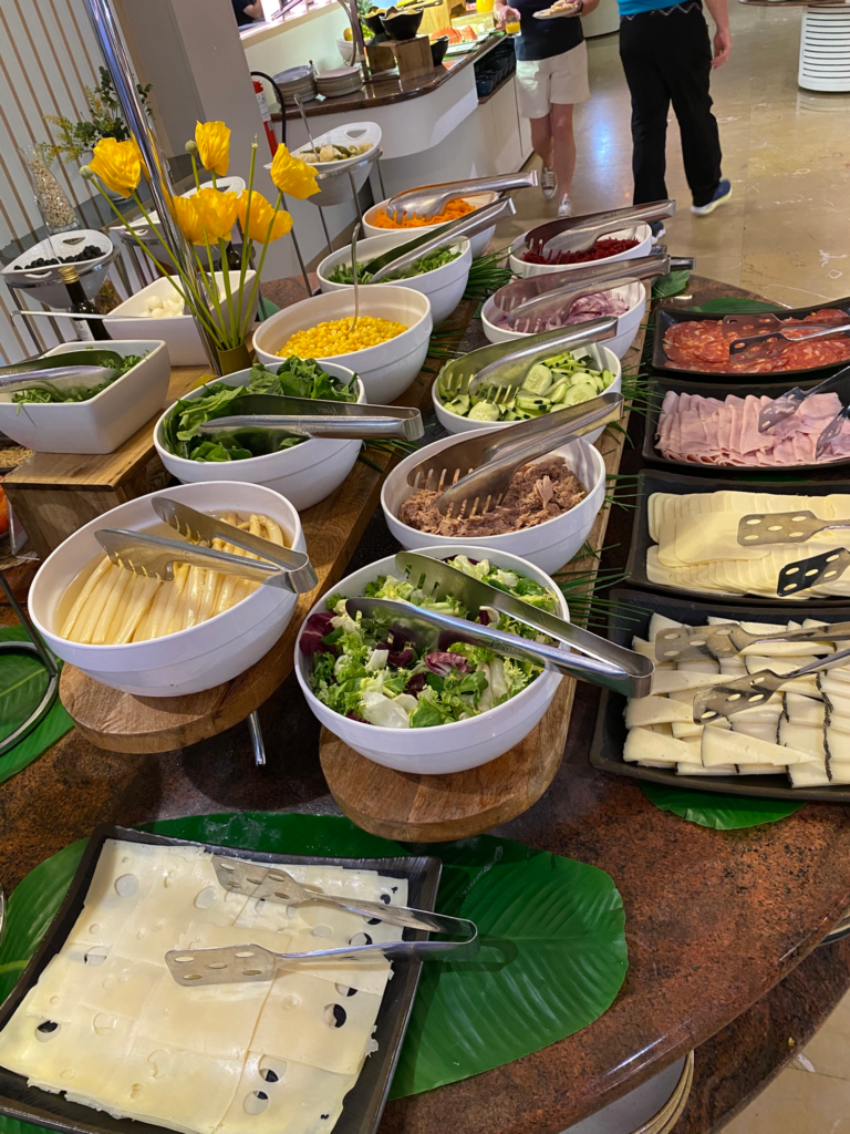 Hotellin aamupalaa oli kovasti kehuttu mm. booking.com palvelussa, joten odotukset olivat korkealla. Aamiashuoneen rauhallinen tunnelma syleili kutsuvuudellaan. Söimme aina ennen auringonnousua kahdeksan maissa, joten kaikkialla oli vielä mukavan hämärää. Missään ei ollut ruuhkaa, vaikka hotelli kyllä muutoin vaikutti olevan hyvinkin täynnä. Ehkä aikaisella ajankohdalla oli asian kanssa tekemistä?