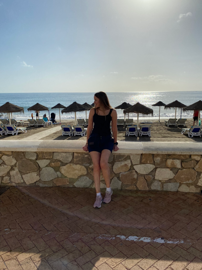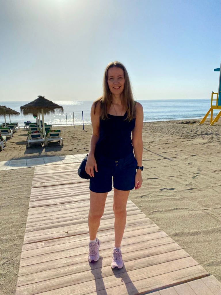 Fuengirolan rantakatu oli suosittu lenkkeilijöiden keskuudessa. Aamuvirkut joogailivat tai venyttelivät rantahietikolla. Kävipä moni aamu-uimassakin lokakuisessa meressä. Tästä näkymästä sai imettyä valtavasti positiivista energiaa, ja esimerkkiä omaan päiväänsä.