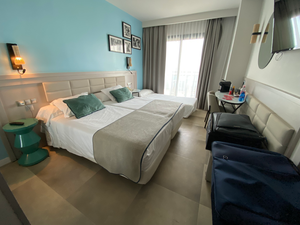 Olimme varanneet neljän tähden Leonardo Hotel Fuengirola Costa del Solin su-ke välille. Rantakadulla sijainneelle hotellille ei ollut kummoinenkaan kävelymatka sunnuntai-illassa juna-asemalta. Ainoa haaste liittyi verkkoon. Juna-aseman ulkopuolella ei ollut kuuluvuutta, joten alkuun jouduimme harhailemaan hieman, jotta saimme google mapsin toimimaan.