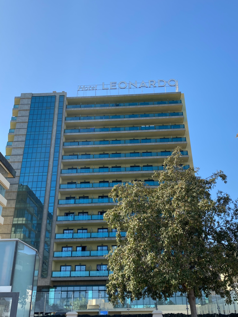 Olimme varanneet huoneen merinäköalalla. 6. kerroksen huone oli pieni, mutta siisti. Yleensä hotellihuoneissa on aina öisin läsnä jonkinmoinen etäinen häly, mutta Leonardo hotellin ehdoton plussa oli hiljaisuus. Olen ihan mahdottoman herkkäuninen, mutta täällä unia eivät häirinneet ainakaan oudot äänet.