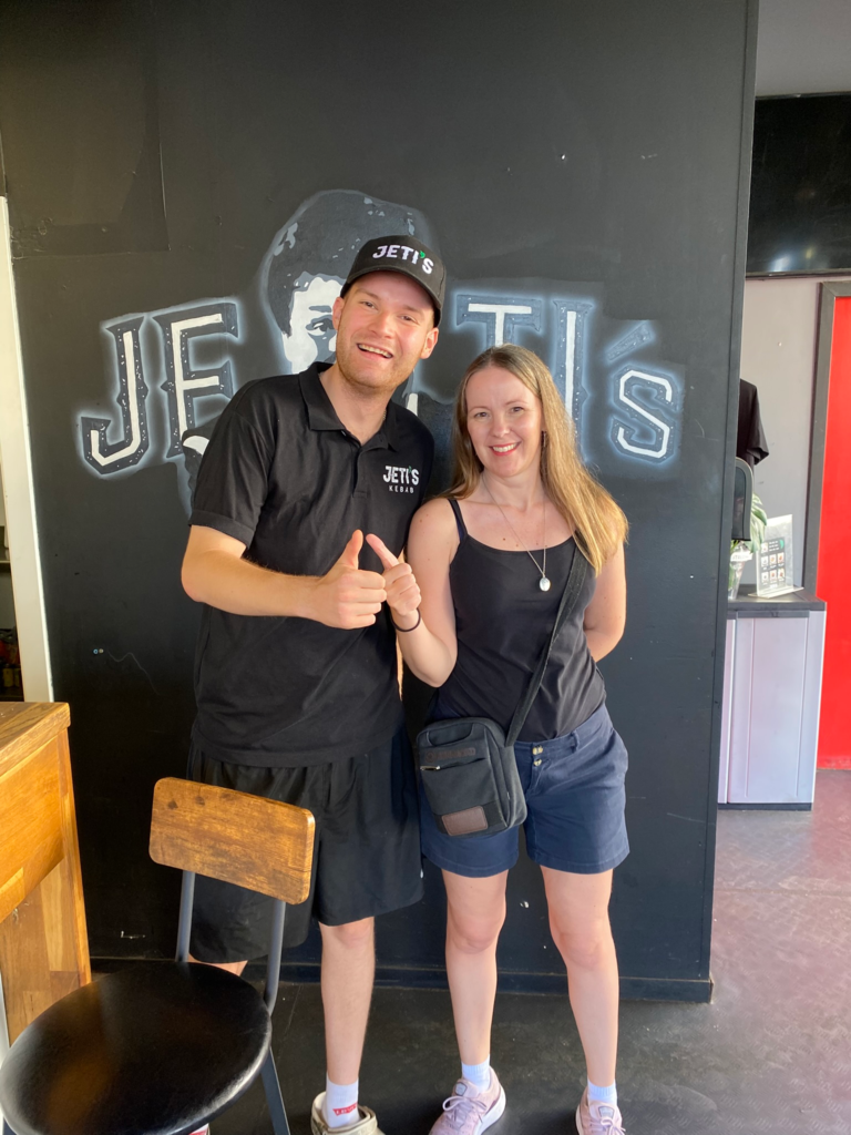 Halutessaan Fuengirolassa voisi syödä (ja juoda) koko loman ajan pelkästään suomalaisomisteissa paikoissa. Eli, jos epäilet kielitaitoasi ja arkailet sen vuoksi ulkomaille matkustamista, on Fuengirola oivallinen paikka reissaamisen aloittamiselle. Olemme katselleet joidenkin aurinkorannikon suomalaisten tubevidoita toisinaan ajanvietteeksi, mm. Jethron. Koska Fugessa oltiin, ja juniori halusi kebabia, niin tietenkin kävimme Jeti’s Kebabissa.