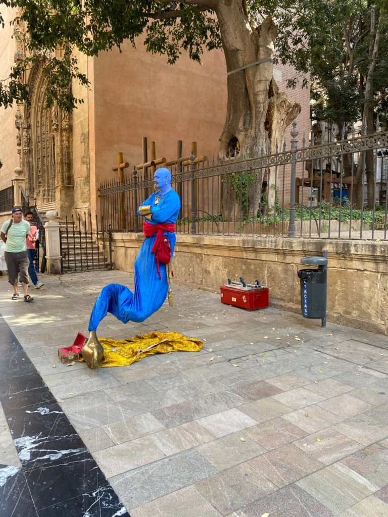 Kirkon ympärillä parveilivat erilaiset pienyrittäjät, kaupustelijat ja performanssitaiteilijat. Empiirisen tutkimuksen perusteella kauppakin kävi, koska lokakuisena keskiviikkona keskusta oli houkutellut luokseen koko joukon turisteja. Olen käynyt Malagassa kerran aikaisemmin. Tuolloin, maalis-huhtikuun vaihteessa, ei ollut lainkaan samanmoista vilkkautta.
