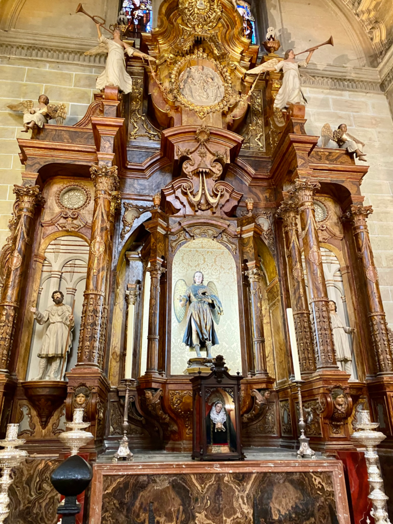 Tunnistin osan Malagan katedraalin pyhistä. Annoin almuni Santa Lucialle, jonka tarinan tunnen parhaiten. Kuriositeettina mainittakoon, että Santa Lucia osoittautui myös silmäsairaiden suojeluspyhimykseksi, joten almuni menivät tilanteessani mystisesti todellakin oikeaan osoitteeseen.