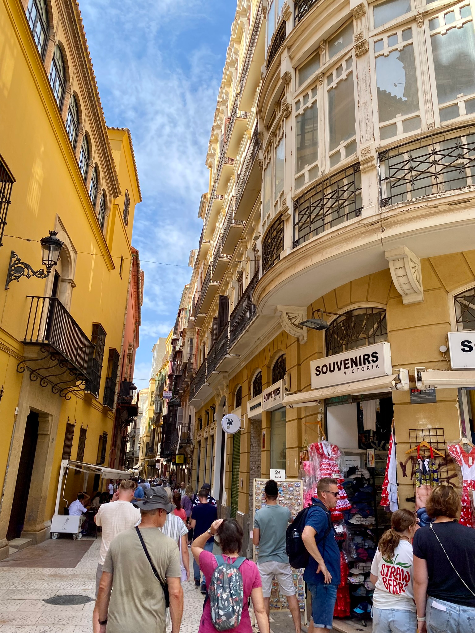 Malagan viehättävät ja kauneimmat kujat, sekä tapasravintolat olivat ihan täynnä turisteja, ja osin paikallisiakin. Päämäärättömästä haaveilusamoilusta ei oikein tullut mitään. Se nimittäin vaatii toteutuakseen tarpeeksi rauhallisen ympäristön, sellaisen, kuin esimerkiksi joissakin Kreikan pikkukaupunkien valkoisten kalkkikivirakennusten lomassa.